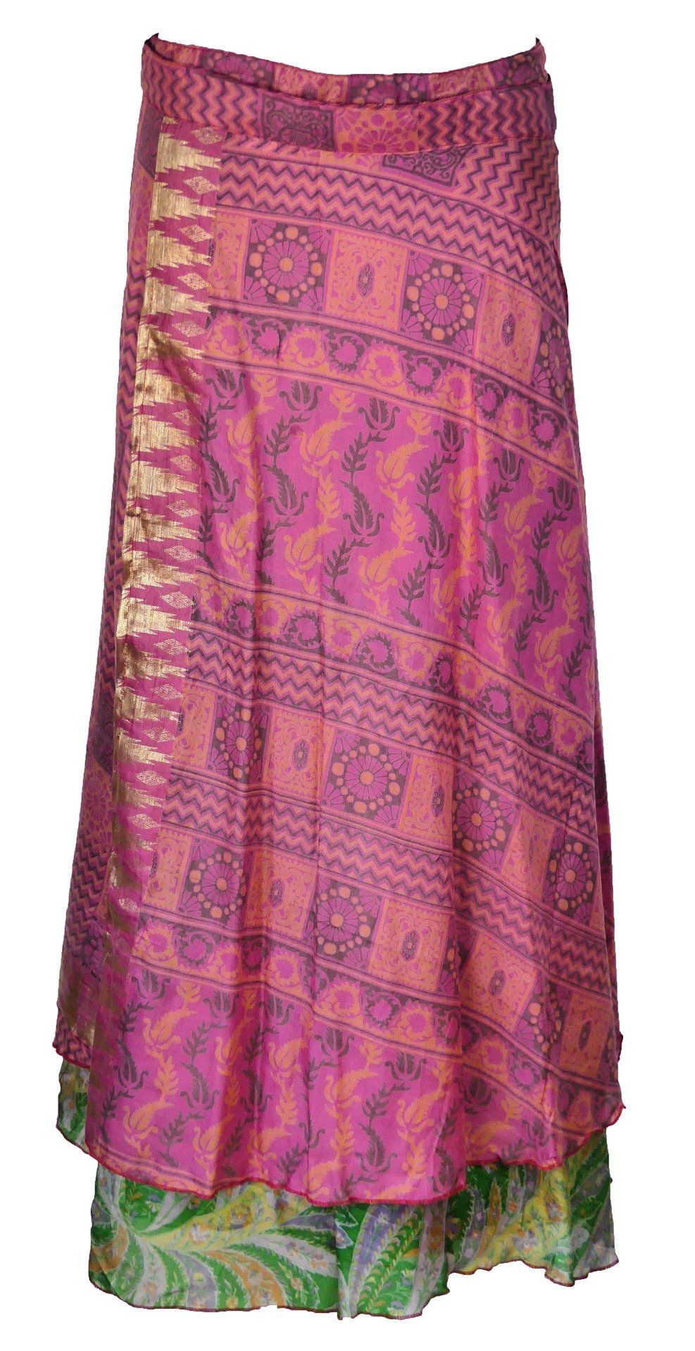 Jupe longue en soie rose et bordeaux